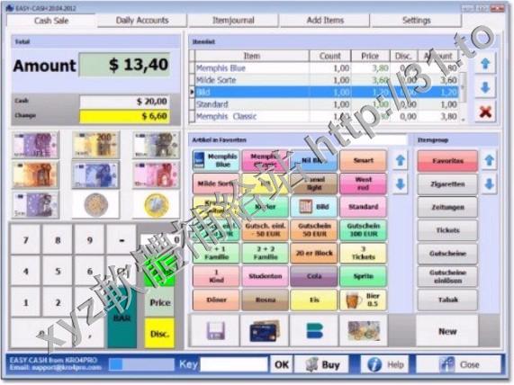 您預先設定的折扣,定義的增值稅稅款,並列印所有報表。支援條碼掃瞄器。