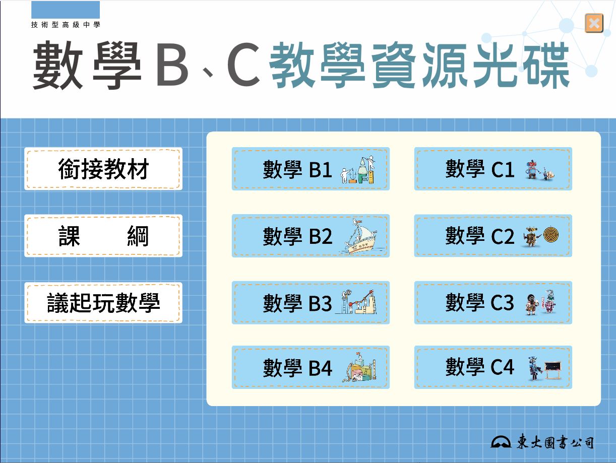 技術高中 三民東大版 數學科(B版 1-4冊、C版 1-4冊) 教學光碟