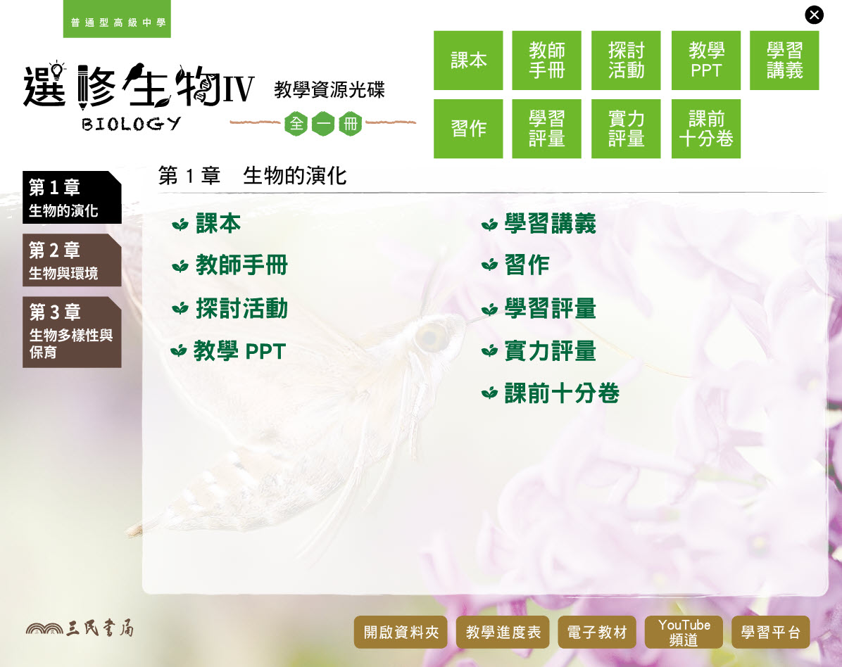 112學年 高中 三民版 選修生物(IV) 教學光碟
