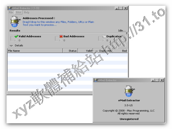 Maxprog eMail Extractor是一個從網站其它文本文件裡抓取Email電子郵箱地址的工具。