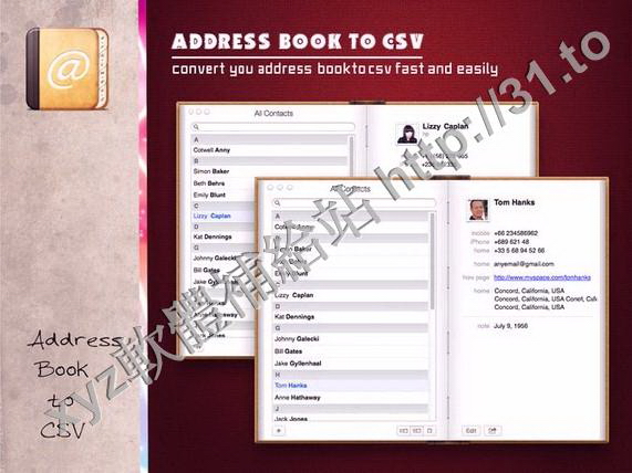 Address Book to CSV v1.01 MacOSX 英文正式版(蘋果通訊錄/csv轉換軟體)