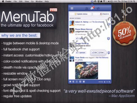• MenuTab Pro for Facebook v5.2 MacOSX 英文正式版(Facebook 快速訪問軟體)